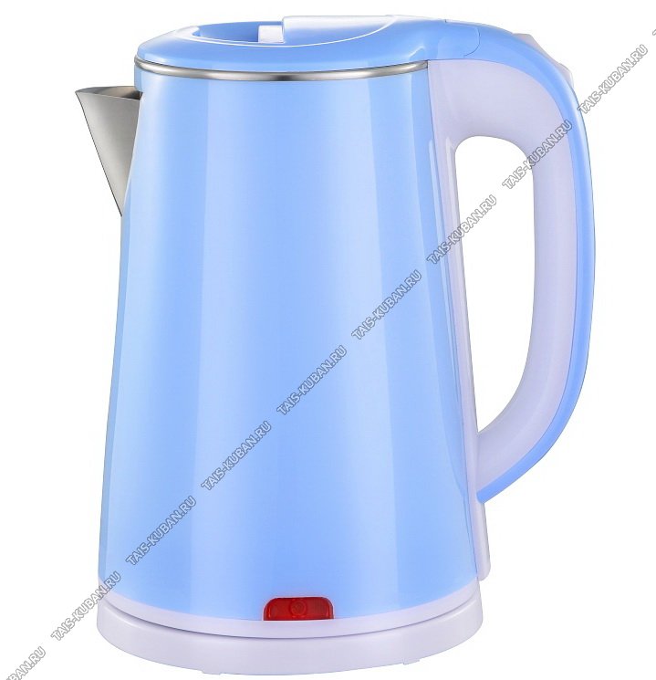 Чайник пластик+нерж. 2,0л 1800Вт диск,2-ые стенки (внутр.нерж.сталь),свет.индикат,автооткл,защ.б/воды,вращ.на 360°,голуб (12)