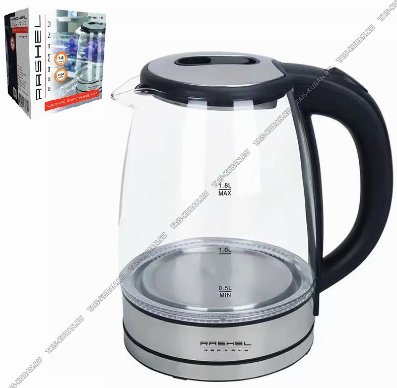 Чайник стекло 1,8л 1500Вт. диск,автоотключение, LED подсветка, вращающийся корпус на 360°,защ.б/воды (6)