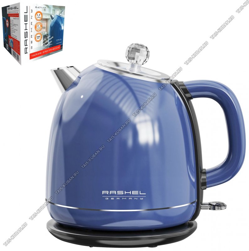 Чайник пластик+нержавеющая сталь 1,7л 1500Вт "Retro", синий (6)