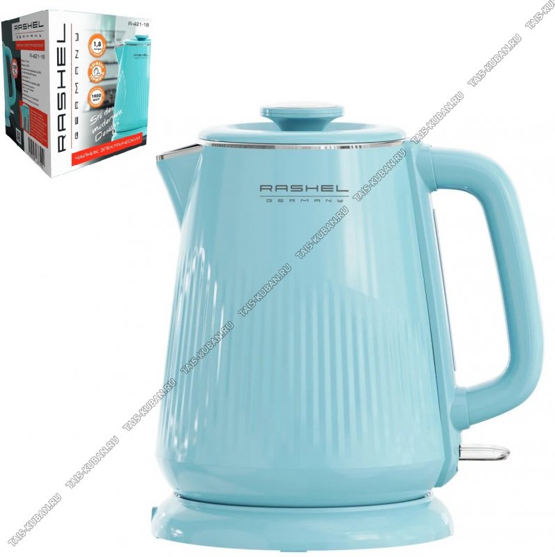 Чайник пластик+нержавеющая сталь 1,8л 1800Вт. диск, 2-ная стенка (внутр-нержавеющая сталь), съемная крышка, автоотключение, вращающийся рифленный корпус на 360°,защ.б/воды, голубой (6)