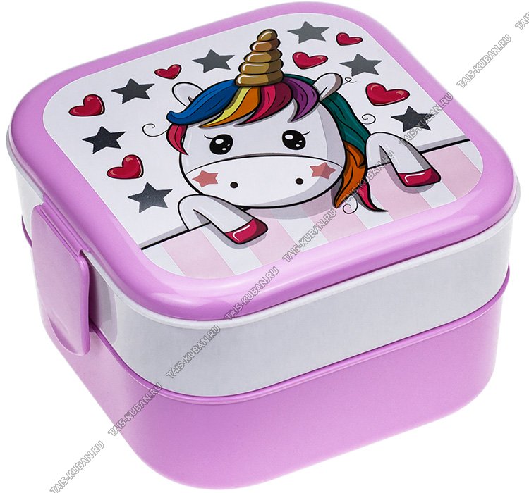 Ланч-бокс 0,4+0,4л "Единорог" 2-х секц,розов (12х12 h13см) Idea (12)