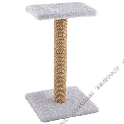 Материал: основание,верхняя площадка,заглушки в столбах - ДСП 16 мм.;обивка основания и верхней площадки -искусственный мех,серый. Обмотка столбика - джутовый канат 6 мм.;столб - картонная гильза; дополнительно: металлические скобы, гайки, болты. Рекккомендовано для кошек весом до 4 кг. (20)