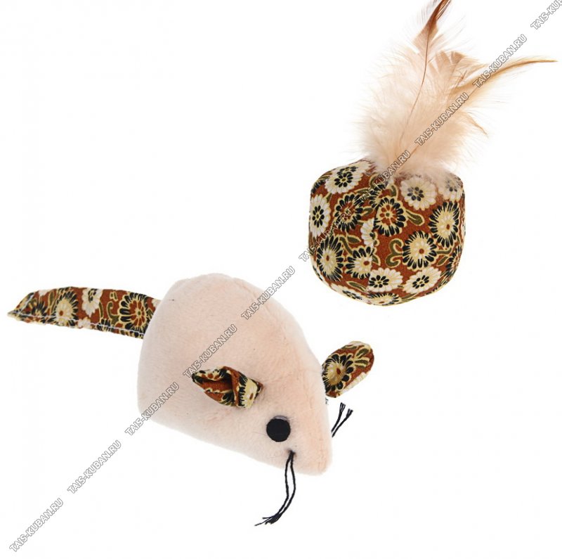 Игрушка-мягкая набор 2шт "Мышь и шарик" полиэстр, перо