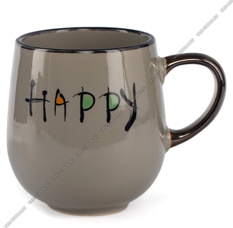 Кружка б/уп 450мл "Эмоции/Happy (счастье)" серая (ф.бочка) (6) Domenic