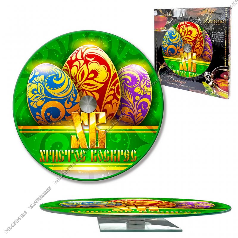 Блюдо вращающееся "Христов Воскрес" d28см стекло