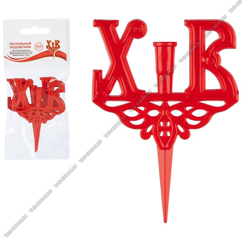 Подсвечник д/кулича,пасхи Н-р 3шт "ХВ" 8х6см, красный,пластик,уп.пакет