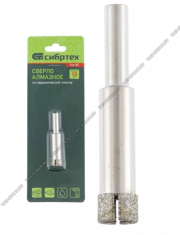 Сверло по стеклу и керамической плитке 12мм, цилиндрический хвостовик,блистер (60)