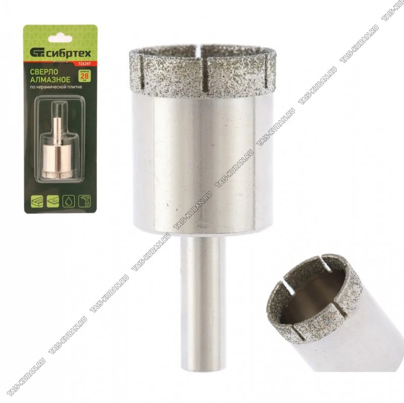 Сверло по стеклу и керамической плитке 28мм, цилиндрический хвостовик,блистер (16)