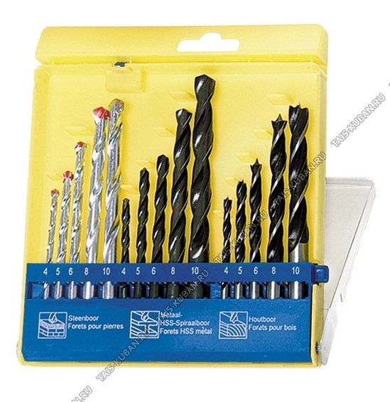Сверла комб. н-р 15шт.(4,5,6,8,10мм-по бетону,мет,дер) цил.хвостовик,пласт.пенал Сверла комб. н-р 15шт.(4,5,6,8,10мм-по бетону,мет,дер) цил.хвостовик,пласт.пенал