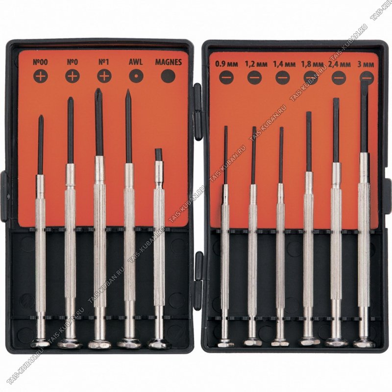 Н-р Отверток д/точных работ 11шт.(Ph-00; Ph-0; Ph-1; SL-0.9; SL-1.2; SL-1.4; SL-1.8; SL-2.4; SL-3.0 магнит,шило) пласт.бокс (50)