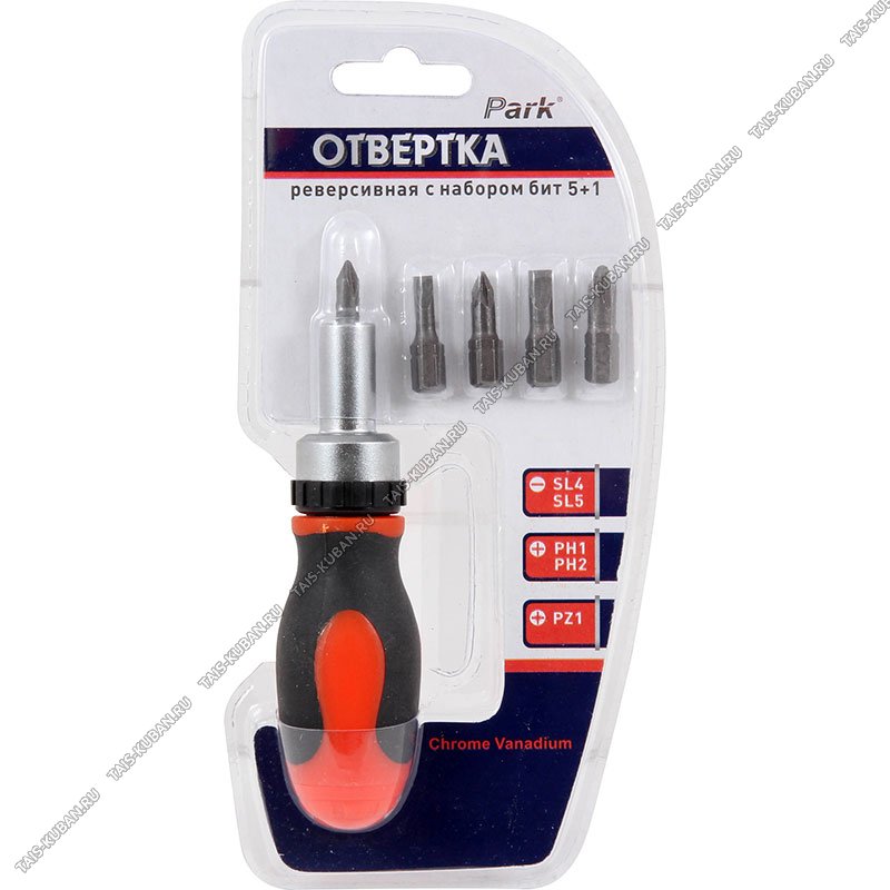 Н-р отвертка реверс.с н-р бит 5шт 25мм (PH1-PH2,SL4,SL5,PZ1) блист.