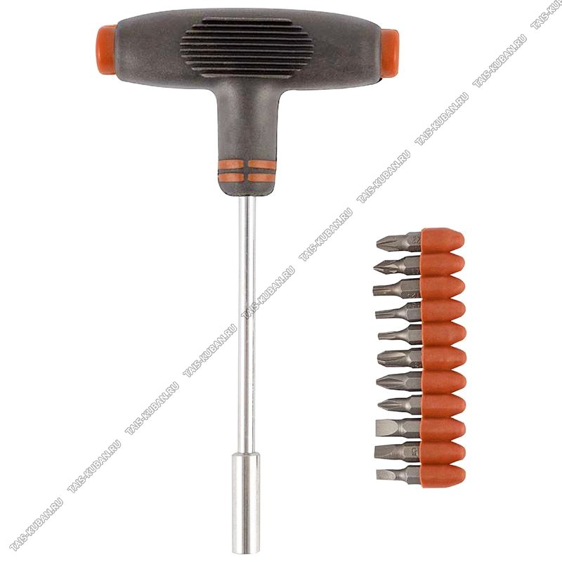 Н-р бит 12пр (11шт 25мм:SL4,SL5,SL6,PH1,PH2,PH3,T10,T15,T20,PZ1,PZ2) c Т-образ.ручкой, хром-ванад.сталь, блистер