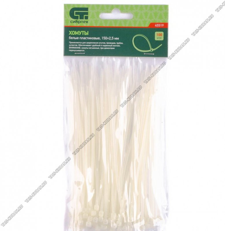 Хомуты плас. белые 150х2,5мм (100шт/уп)