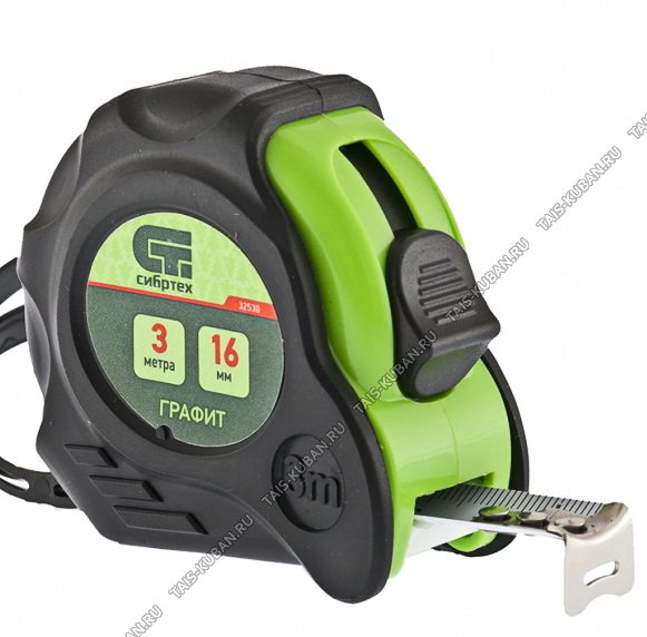 Рулетка 3х16мм.ударопроч.обрезин.корп,амортизатор "Графит" (12)