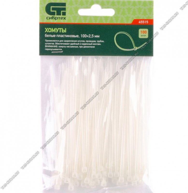 Хомуты плас. белые 100х2,5мм (100шт/уп)