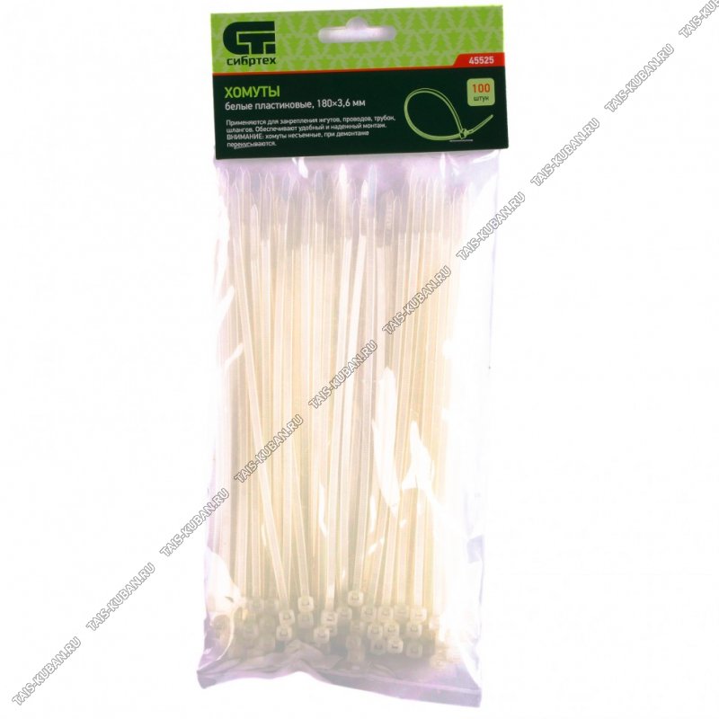 Хомуты плас. белые 180х3,6мм (100шт/уп)
