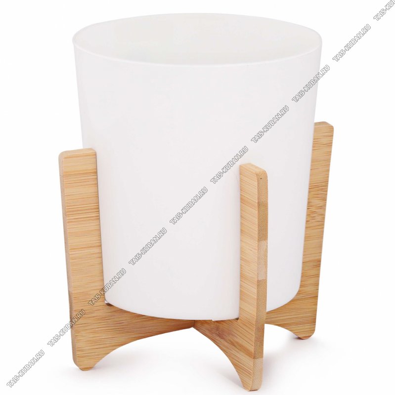 Кашпо "Алессия" белый 1,8л d17 h18,5см на бамбук подставке (15)