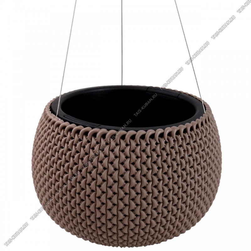 Кашпо-подвес "Лэйс/Плетение" шар, серо-кор 2,3л d24 h14,5см,вклад.с ручк,метал.подвесы (6)