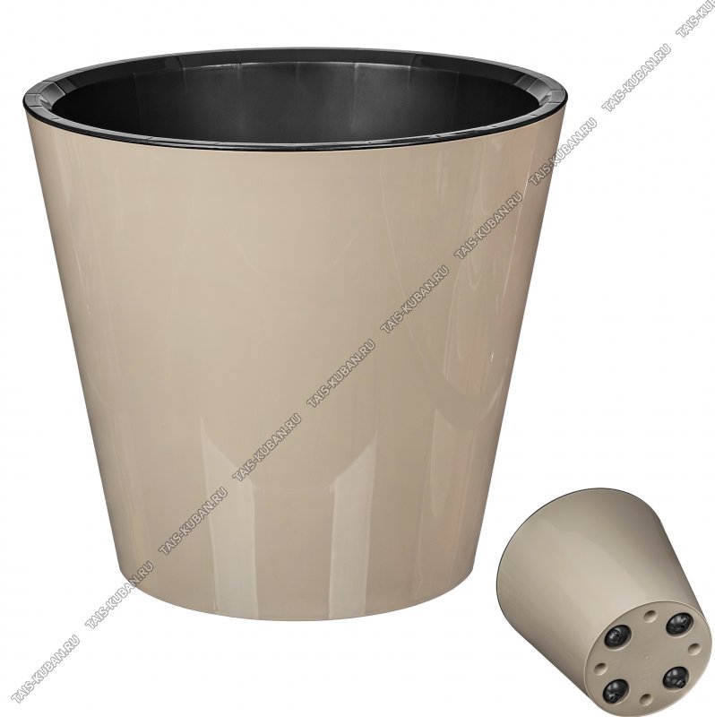Кашпо "Rosemary" беж.глянец 16л d33 h30,5см,колёсики,вкладыш черный (4)