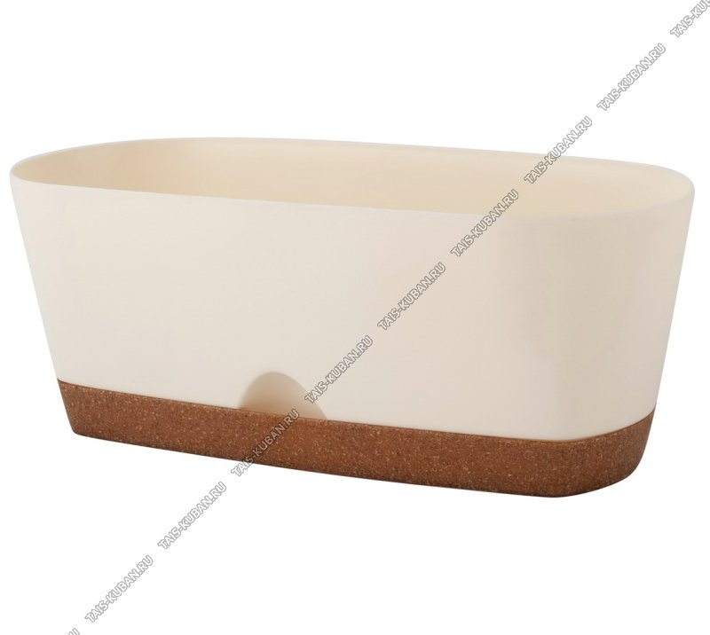 Кашпо "Wood." овал, сливочн 1,7л L25х11,5 h9,5см,прикорнев.полив,"тёплый" поддон с деревян.стружкой (6)