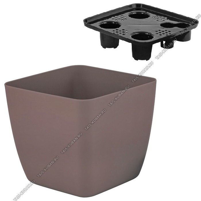 Кашпо "Vienna" горьк.шоколад 1,5л квадр 13х13 h12см, дренажн.вставка (10)