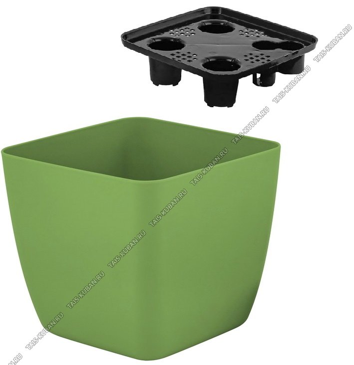 Кашпо "Vienna" оливка 5,0л квадр 19х19 h18,5см, дренажн.вставка (16)