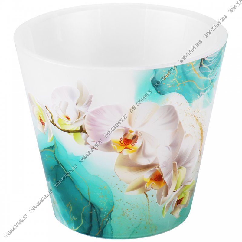 Кашпо "London/Орхидея белая" бирюза 1,6л/вкладыш 1,4л d16 h14,5см (16)