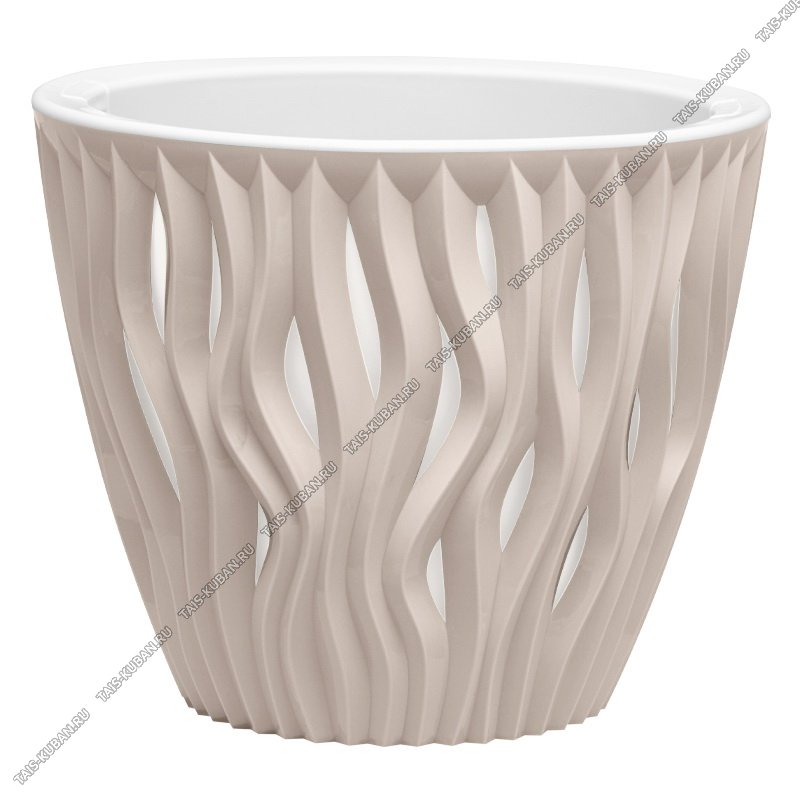 Кашпо Кашпо "Вдохновение" пудра (беж) 2,25л вклад.с ручк.белый d17 h14,5cм (16)
