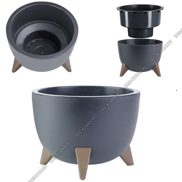 Кашпо "Грация" на ножк, антрацит 4,5л d25 h19см,вкладыш (12)