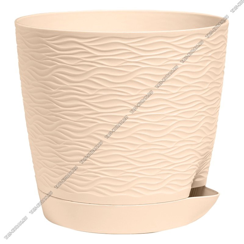 Кашпо "Блюз" 1,5л кремовый d14 h13,5cм,поддон с автополив (18)