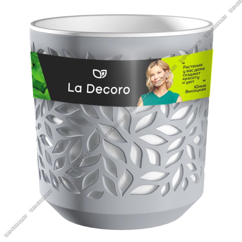 Кашпо "Листья" серый 1,25л вклад.белый d13 h13,5cм (27)