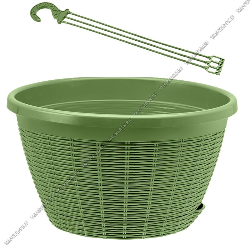 Кашпо подвесн "Плетение" олива 4,5л d26 h15cм,поддон с автополив (20)