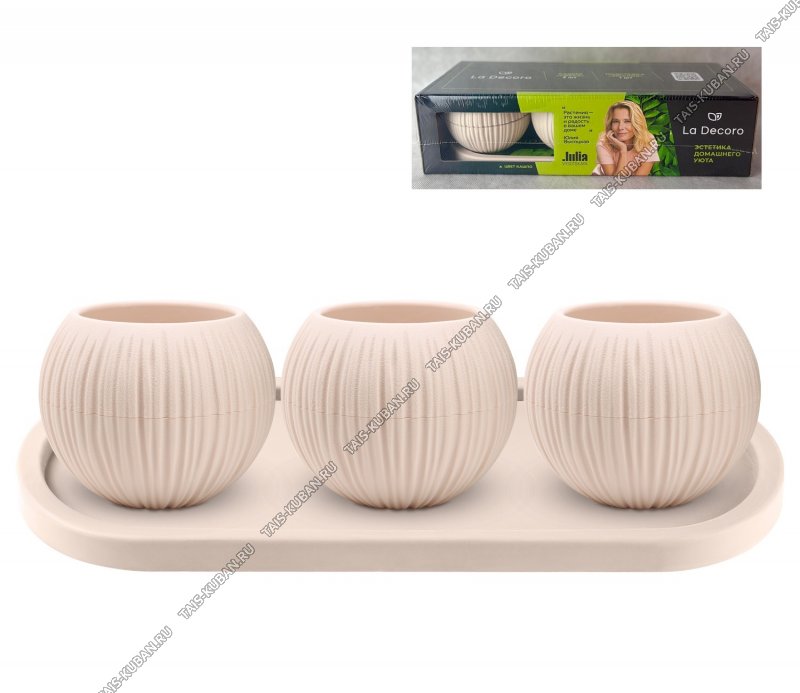 Кашпо Кашпо "Сфера." н-р 3шт на подставке, крем 0,3л (4)
