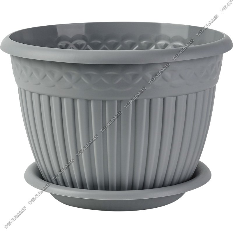 Кашпо "Византия" серый жемчуг 15л d35 h24см,рельеф.узор,с поддон.(8)