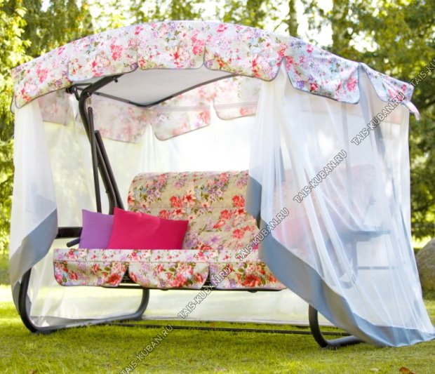 Качели-садовые 3-х местные "ТУРИН Премиум Flower/Цветы розов" до 280кг (1)
