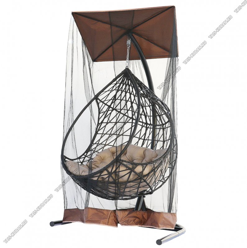 Кресло "Фелиса" коричн/бежев, на стойке, подвесное, москит.сетка,крыша,искусствен.ротанг,каркас стал.труба (105х123 глуб.87см h200см) подушка синтепон+водоотал.ткань,нагруз.до 130кг (1)