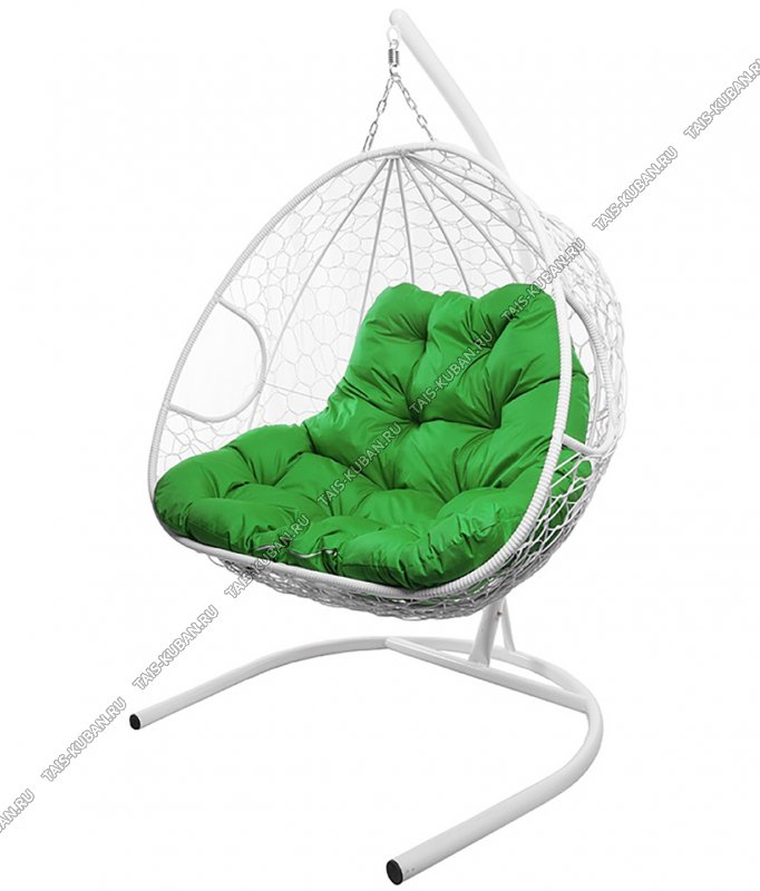Кресло "Для двоих" до 160кг, белый, подушка зеленая (1)