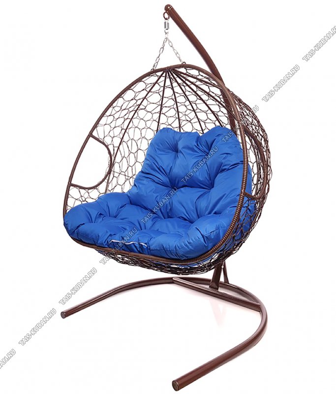Кресло "Для двоих" до 160кг, коричневый, подушка синяя (1)