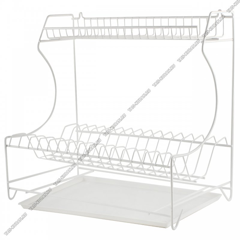 Сушилка д/посуды настол-настен "трапеция" 2-х яр на 15 тар.(L40х24см h46см) окраш.белый,пласт.поддон (2)
