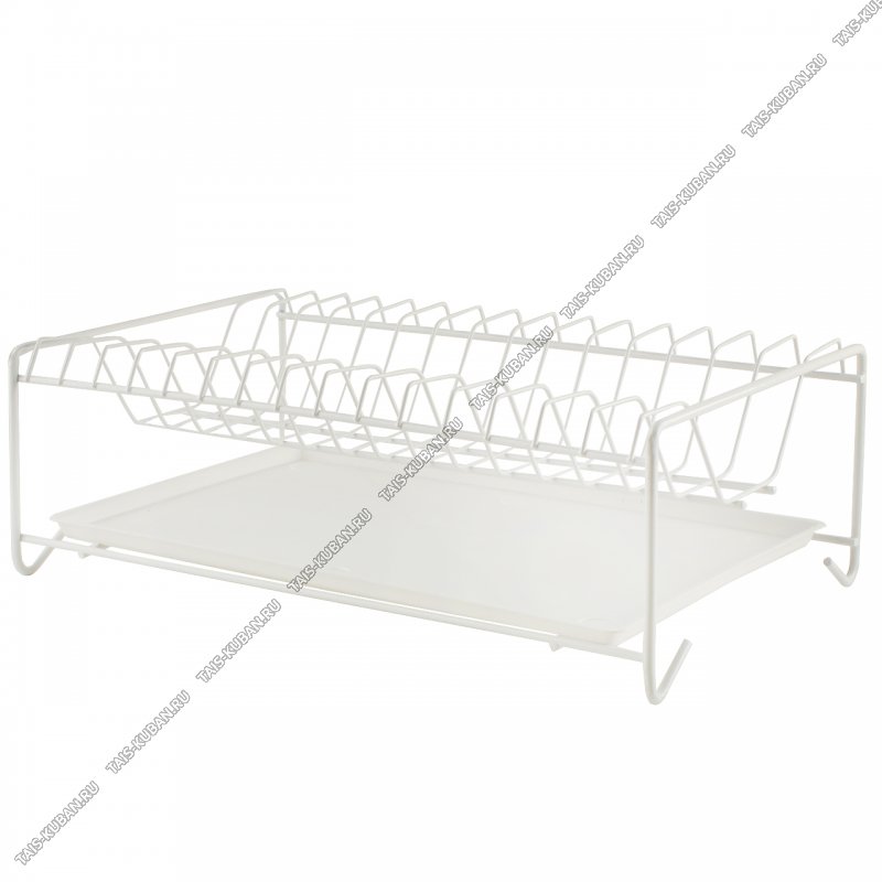 Сушилка д/посуды настольн "прямоугол" на 15 тар.(L39х24см h12см) окраш.белый,пласт.поддон (1)