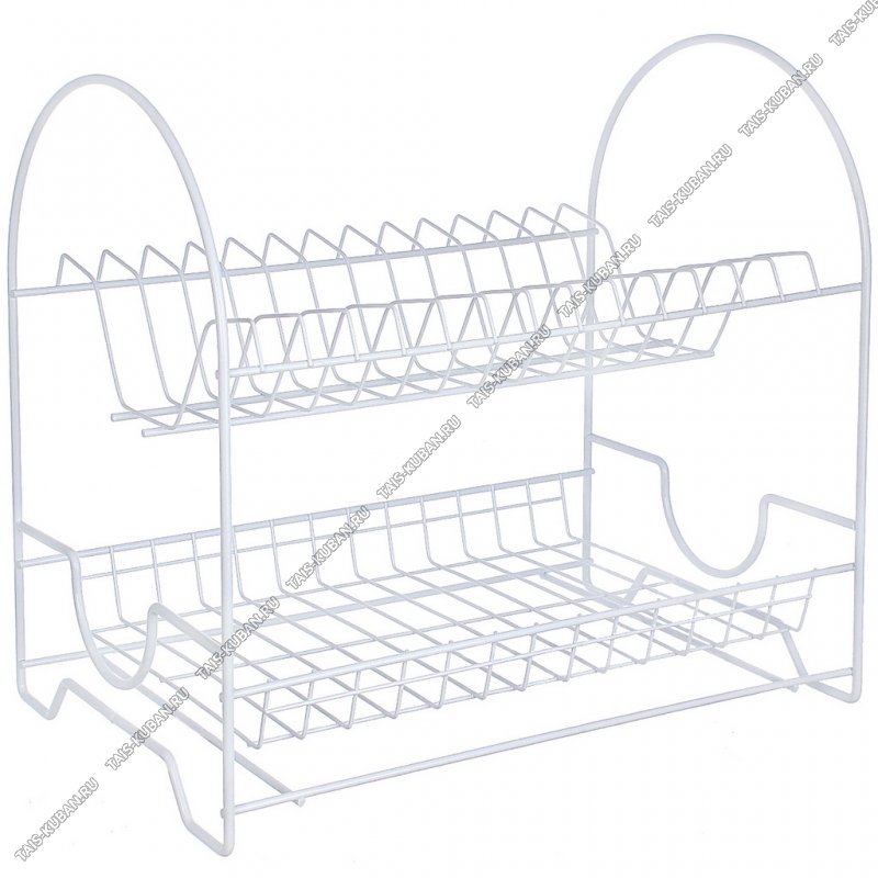 Сушка д/посуды оцинк. 2-х яр на 12 тар.(38х24см h35см)окраш.белый,пласт.поддон ЛЮКС, настольн.