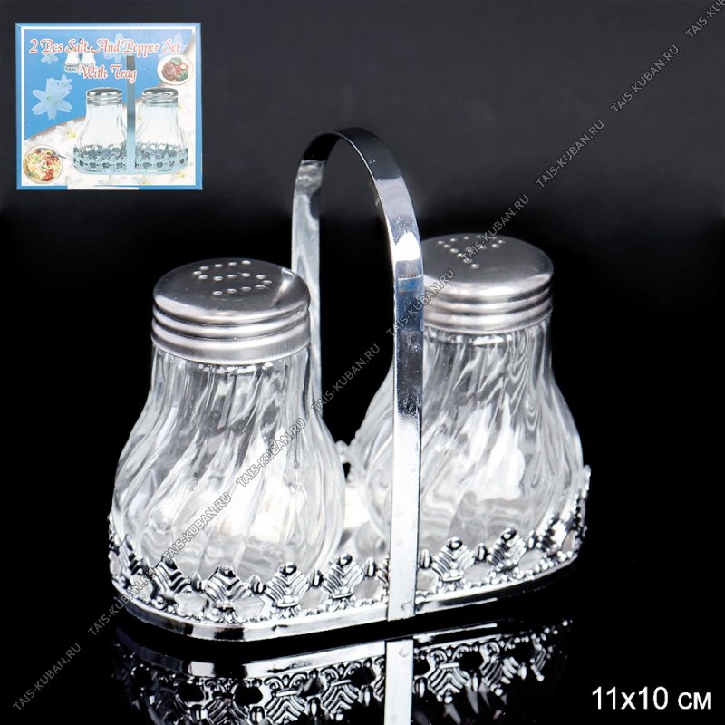Набор для специй 2шт*50мл (метал+стекло) с салфетницей Набор для специй 2шт*50мл (метал+стекло) с салфетницей