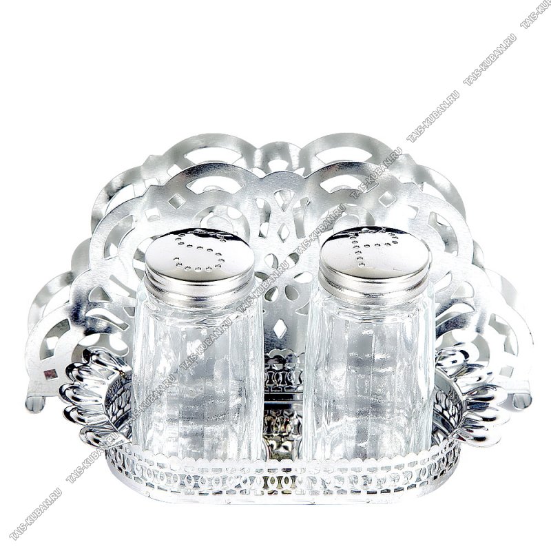 Набор для специй 2шт*50мл (метал+стекло) с салфетницей