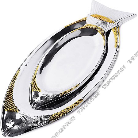Поднос "Nouvelle/Рыбки" Н-р 2шт фигурн.48х20/ 32х12 h1,2см,нерж.сталь,хром с элем "золота",п/у
