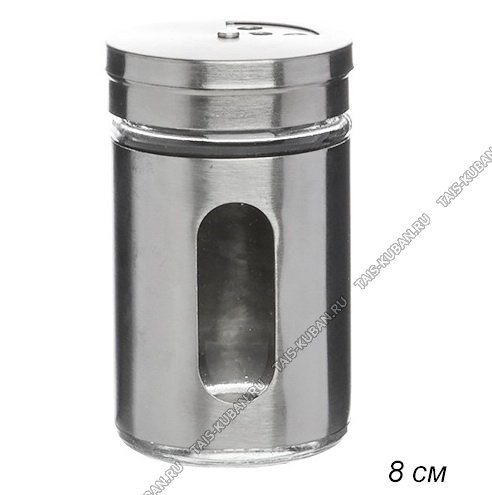 Баночка д/специй (нерж) 100мл с окошком h8см (12/144)