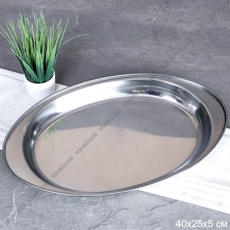 Блюдо (металл) овал L40х25 h5см,зеркал.полиров