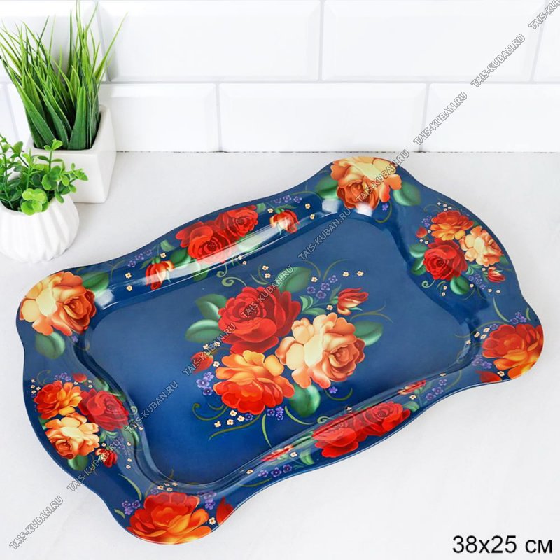 Поднос (эмалированное покрытие) прямоугольный 36х25см Поднос (эмалированное покрытие) прямоугольный 36х25см "Розы"