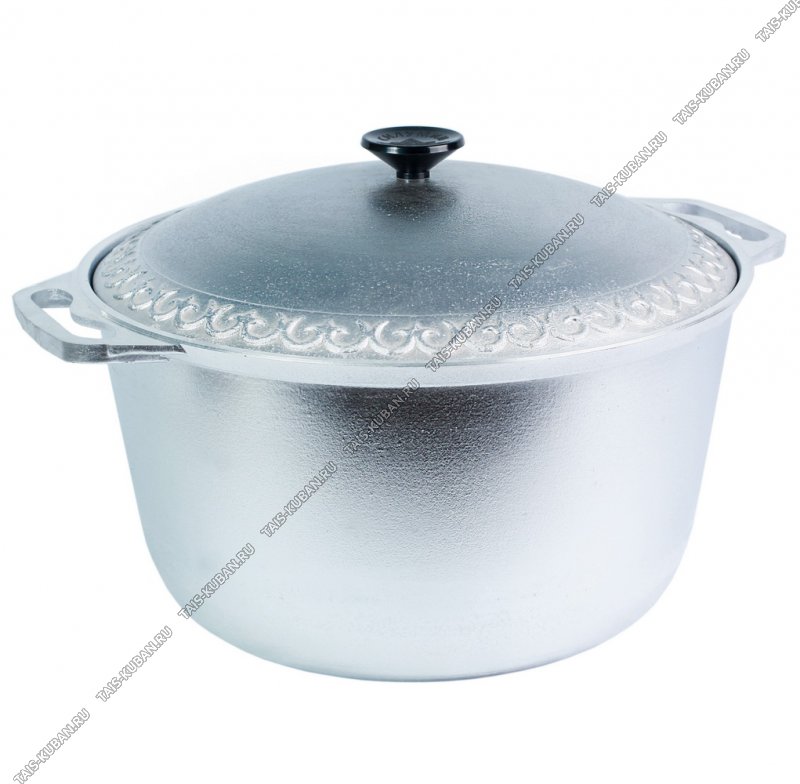 металлическая крышка,коническая форма,2литые ручки,орнамент на крышке,толщина стенки/дна 3,5/4мм