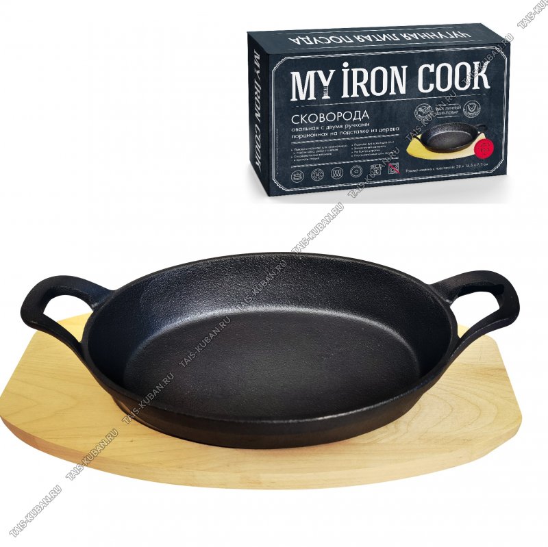 Сковорода порционная овальная L20,5см на деревянной подставке (12)