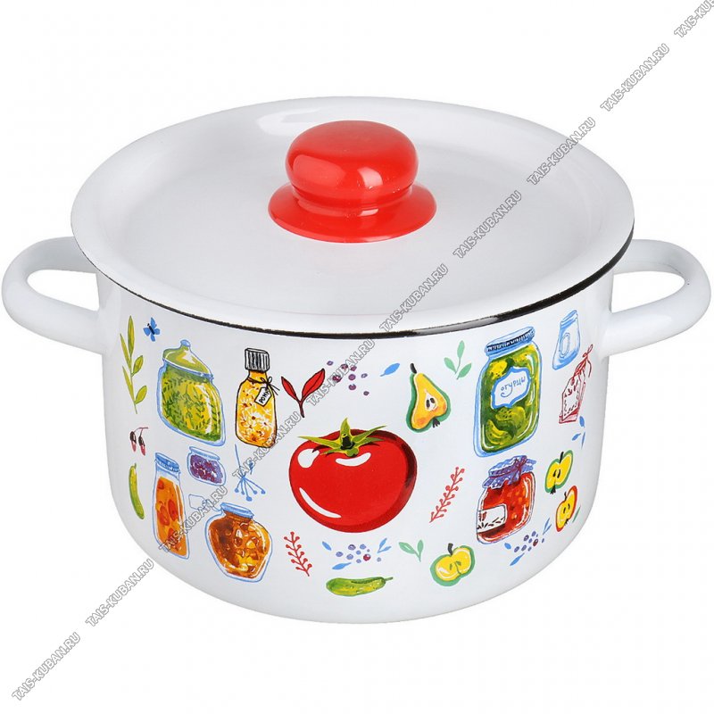 Маринад Кастрюля белый (цил) 1,5л мет.крышк,красн.пласт.ручка/кноп